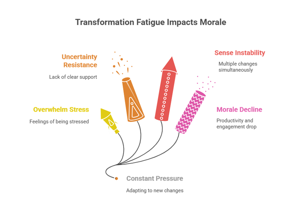 While change is essential for growth and competitiveness, an excessive or poorly managed change can lead to transformation fatigue.